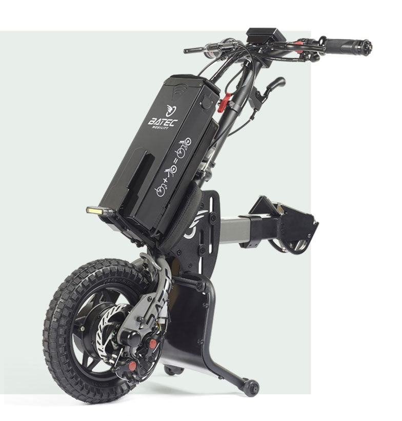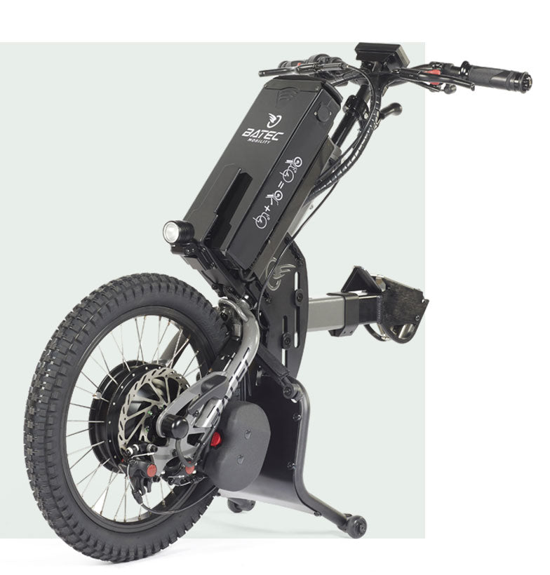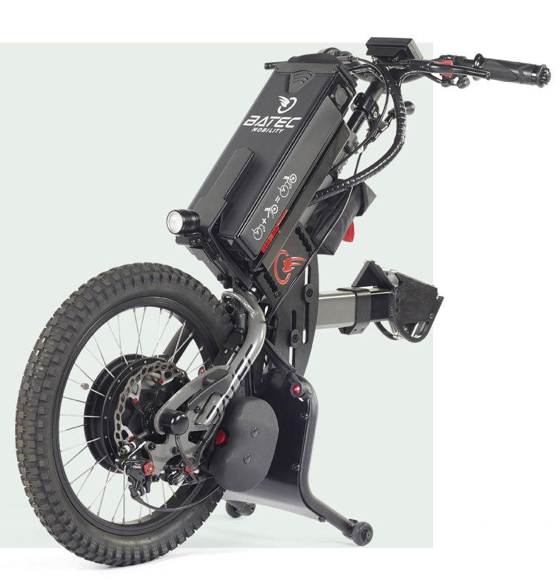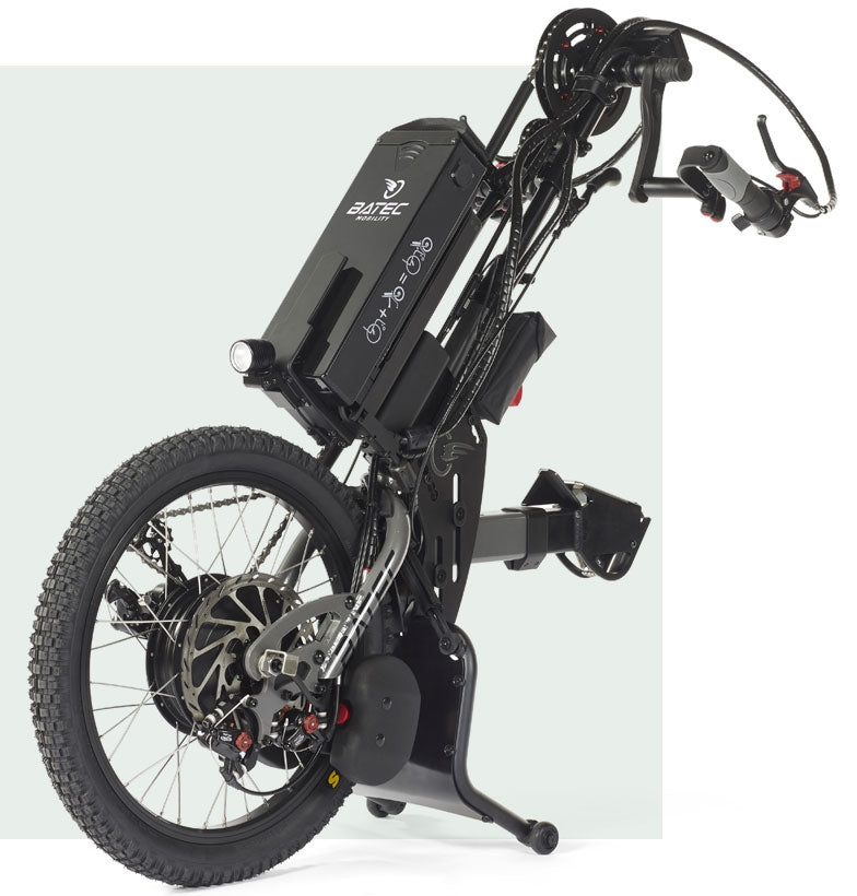 Batec creates high-quality electric and hybrid handbike attachments that connect to the front of a manual wheelchair, lifting the casters and transforming the setup into a powered three-wheel mobility system. The design increases independence, speed, and access to outdoor environments while keeping the user in their own wheelchair.