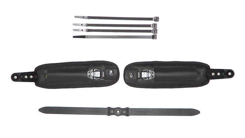Each set includes two padded clickstrap sections connected by a central V-strap, creating a secure and balanced hold while distributing pressure evenly for comfort. The ratcheting buckle system allows precise incremental tightening, so you can quickly adjust tension on the fly and achieve the perfect fit every time.